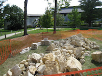 Twelve tons of quarried limestone was delivered to the sculpture site at KSU today. No turning back now.