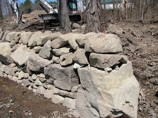 The style of walling I’ve chosen for this construction is best known as “Galloway”, after the area in southwestern Scotland where it’s most common. Small stone ‘doubling’ is used for the first two or three courses and then its ‘singling’ from there to the top.